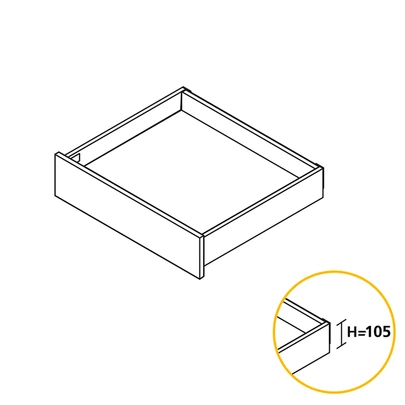 - Kit de herrajes necesarios para el montaje de un cajón exterior de altura 105 mm y profundidad 350 mm, a excepción de la frontera, trasera y fondo.