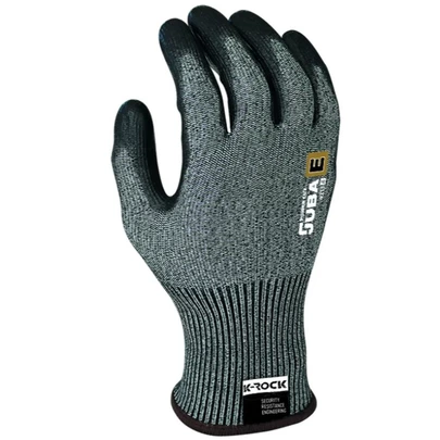 Guante con alta resistencia al corte que incorpora la fibra textil K-Rock®, la nueva tecnología de corte de Juba, recubierto de poliuretano en la palma. Excelente resistencia mecánica, buen agarre y tacto con alto confort. Sensación de frescura por su gran transpirabilidad. Buen agarre en ambientes secos, ligeramente húmedos o aceitados. Excelente resistencia a la abrasión. Mayor durabilidad.