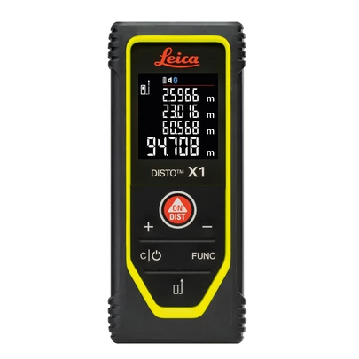 Características técnicas: · Alcance hasta 100 m · Precisión de ±1,5 mm, resolución de 0,1 mm · Tecnología NFC para una transferencia de datos fácil y sin errores · Tecnología Bluetooth® 6.0 para una transferencia de datos sin errores · Transferencia de datos a DISTO Plan y a aplicaciones compatibles con DISTO · Mediciones de distancias · Mediciones mín./máx. · Mediciones de áreas · Mediciones de volúmenes · Mediciones en continuo · Adición/Sustracción · Función de pintor (área con medición parcial) · Pitido · Pantalla iluminada Contenido: · Distanciómetro láser Leica DISTO X1 · Correa de mano · Bolsa · 2 pilas de tipo AAA 2 x 1,5 V · Instrucciones de seguridad · Certificado de calibración Plata · Guía rápida con código QR que enlaza con el manual online · Tarjeta de garantía de 3 años